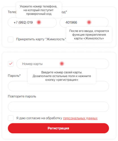 После перехода на экран предложения пользователю будет предложено выпустить карту «Жимолость» сети супермаркетов «Шамса».